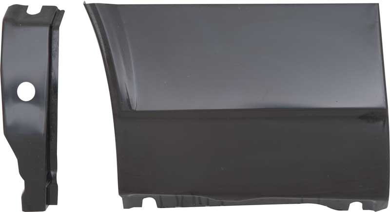 A correctly stamped front fender patch panel which installs at the rear lower fender area of 1967-68 coupe and convertible models. Each panel will replace the rear lower section of this commonly rusted rear area. The panel is approximately 12 " tall. Includes the lower rear inner bracing piece. Each panel comes complete with EDP coating for rust resistance.