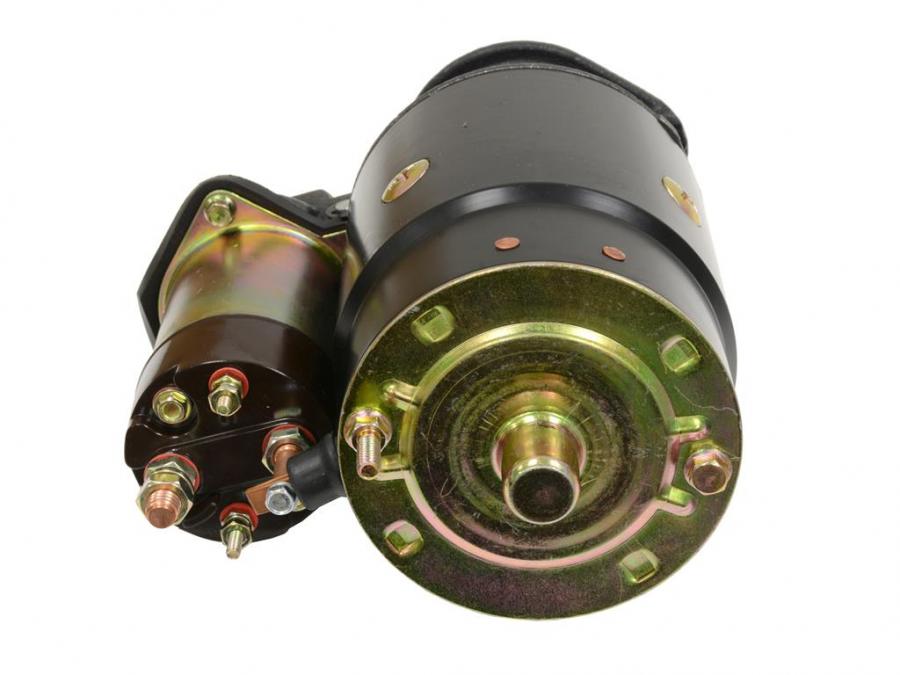 Starter for 1957-1961 C1 Corvettes, 283cid and 1962 Corvettes 327cid with Manual Transmission. New 10MT type, 12V, Direct Drive starter with 9 tooth drive and 3 bolt, cast iron cone drive end housing. Includes Solenoid.
