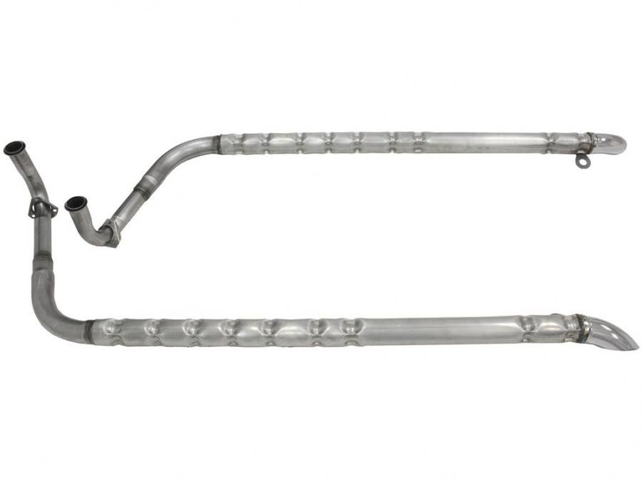 Corvette SideExhaust / Side Pipes line recreates the original sound. They are for the Mid-Year Corvette owner who has to have a car that truly sounds original! These pipes are reproduction of the original factory designed sound chambers. Carbon Steel Head Pipes and Chrome Tips as original.