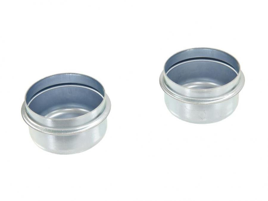 Stamped steel reproduction of original wheel bearing button style dust cap. Cadmium plated. Packaged as a pair.
