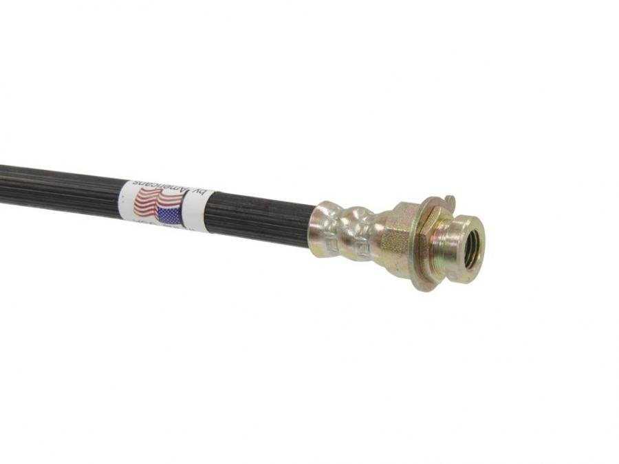 C2 C3, This rear rubber brake hose measures 9 3/4 inches long. Thread size is 7/16 x 20. Double crimp fittings as required by current law
