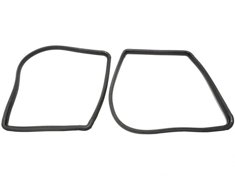 Correct molded rubber rear window channel weatherstrips with molded corners for the 63 Corvette coupe rear split window glass, sold in pairs, includes the left and right rear weatherstrips