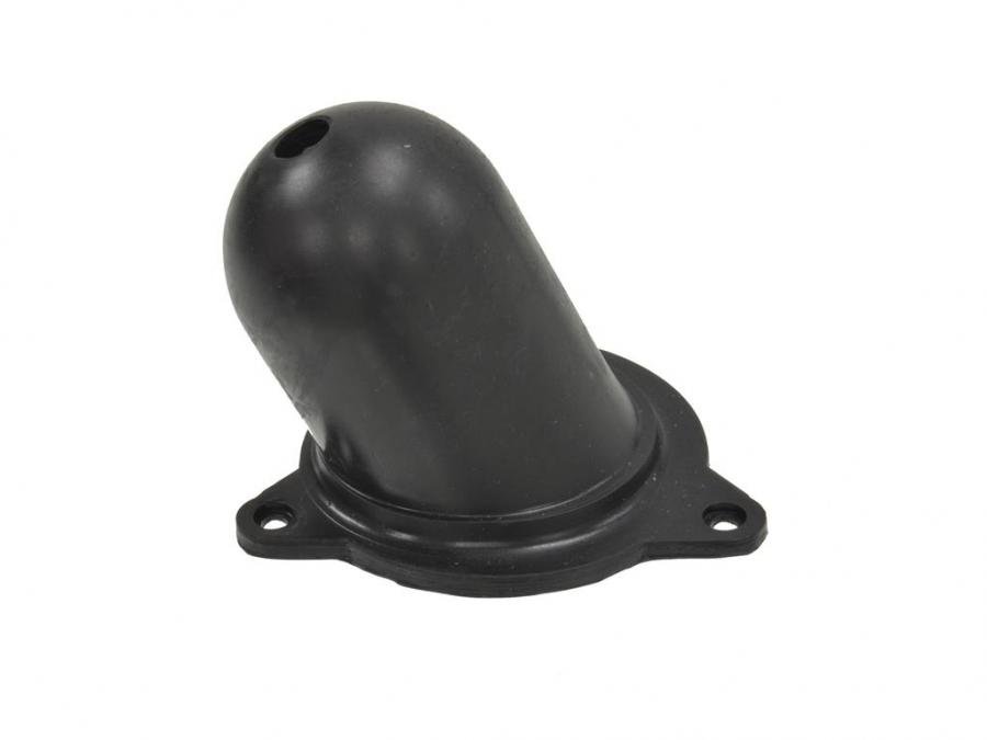 Molded rubber clutch rod firewall seal used from 1965 approx. serial number 11760, thru the end of production in 1967. Mounts using 3 screws, this boot has the metal flange with 3 ears molded into the rubber.