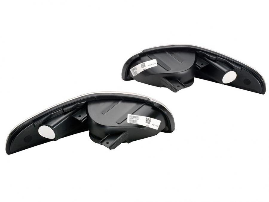1997-2004 Corvette European style Black with Chrome Housings/Amber reflectors Signal Lights. Upgrade your factory C5 bumper lights to our euro clear version. These lights put a twist to the tradition factory style lenses by having a euro black transparent lens that have a chrome inner housing. It is a similar style to those seen on some upscale European vehicles. It is a subtle yet significant style change and it gives a fresh new look to the overall appearance of your Corvette.