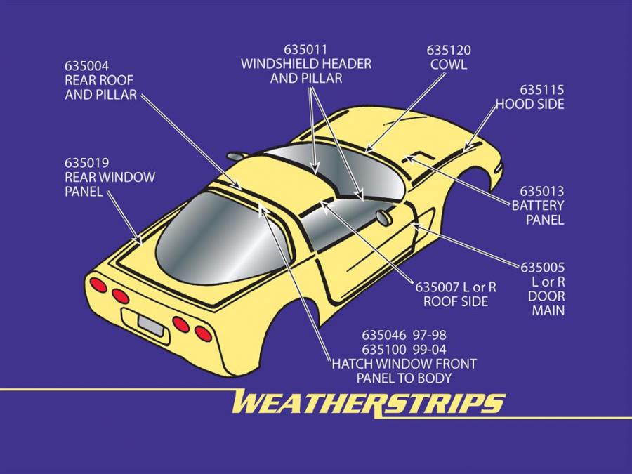 97-13 C5 Hood To Side Fender And C6 Rear Hatch Side Seal Weatherstrip: