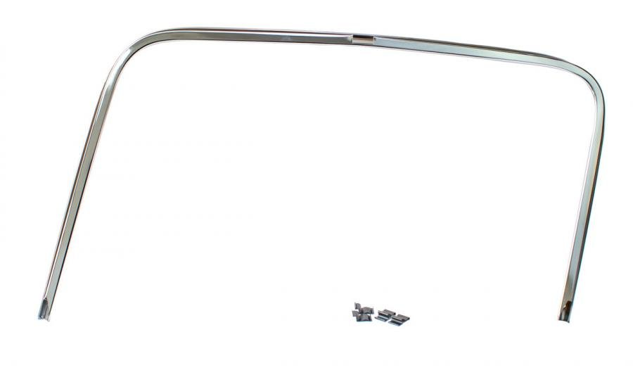 Reproduction inner door frame trim for the 1955-59 Chevy / GMC Truck. This piece trims the top and sides of the interior door glass opening. This is not the glass frame.