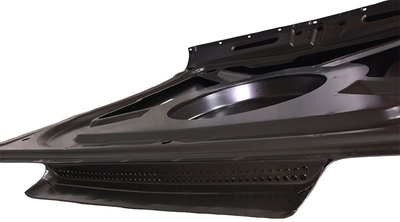 Our panels are made from proper gauge steel and include all correct-as-original clips, tabs, flanges, bends and seams. Each time a prototype body panel comes off of a new tooling, we test fit it on a car. The marked up prototype is then used to change and improve the tools, and a new prototype is produced. This procedure might be repeated multiple times but, once the part is finally approved, you can be assured of a quality part.