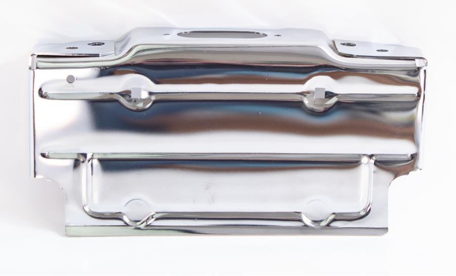 Reproduction chrome rear license plate bracket. Stamped from high quality heavy gauge steel. Features the correct shape, size and holes, like original. Features a beautiful chrome finish.