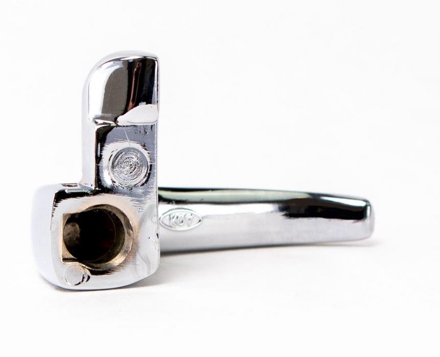 Reproduction vent window handle. Made like OE. Features bright chrome finish. Includes pin and spring washer.