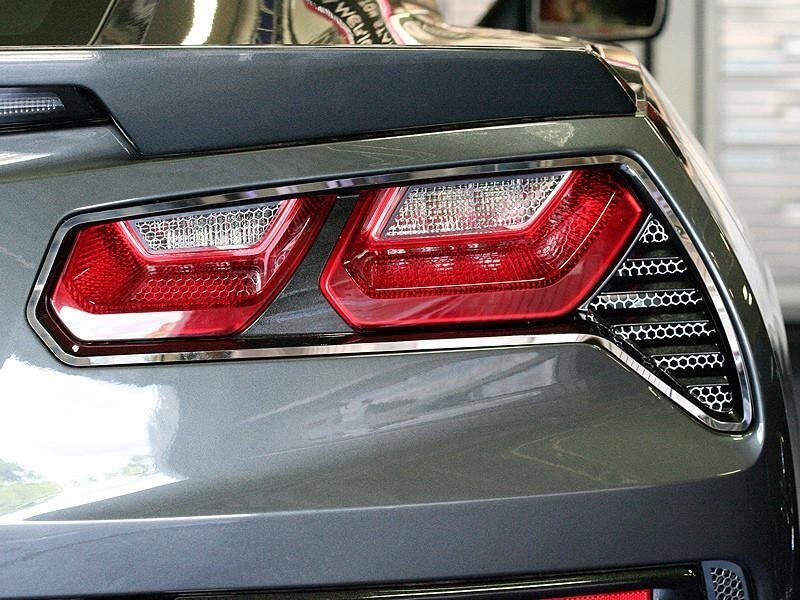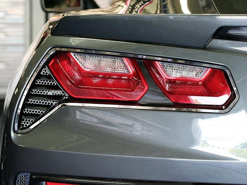 Look good even going backward when you dress up your car with our latest tail light accessories, the C7 Corvette Reverse Light Grilles. This is our Matrix Series, which is a combination of Aluminum Mesh and Stainless Steel. These grilles are designed to fit Corvette Stingrays over the clear reverse tail lights and add an extra level of detail to your Corvette's exterior.
