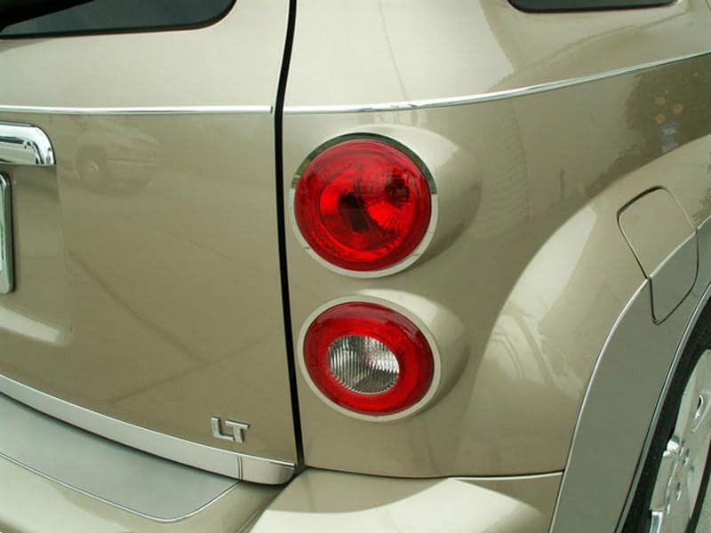 Dress up your HHR with our Polished - Stainless Steel, Taillight Trim Rings. These trim pieces are designed to fit around the stock rear brake lights and add a clean stylish look to your HHR exterior. Compliments our Polished Tailgate Trim - 422010.
