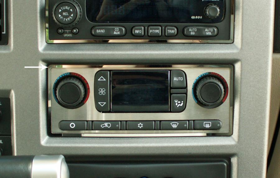 Dress up your Hummer H2 with our Polished - Stainless Steel, A/C Surround Ring only. These trim pieces are designed to fit around the A/C controls and add a clean stylish look to your Hummer H2 interior. Compliments our Polished Radio Surround Ring - 491014.