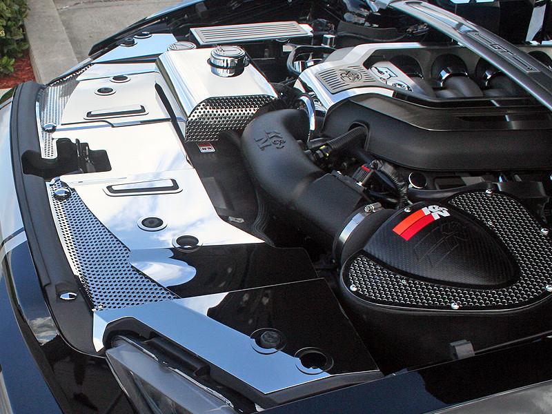 Dress up your Mustang with our Polished Stainless Steel Front Header Plate. This (11) piece trim is designed to fit on the stock header plate area and add a clean stylish look to your Mustang engine bay.