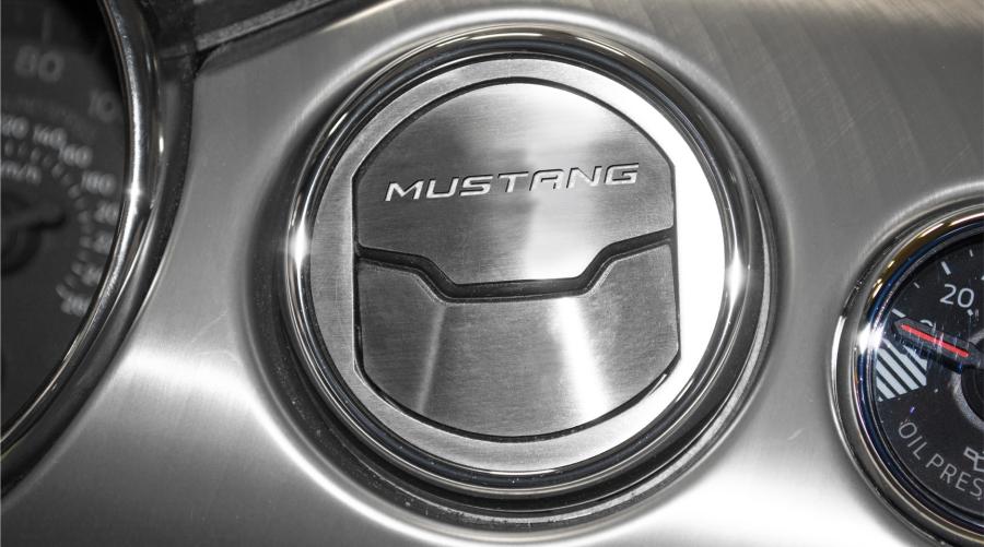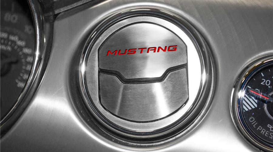 Dress up the interior of your Mustang with our peel and stick A/C Vent Trim Kit with MUSTANG LETTERING and Inlay Color Options. This Officially Licensed trim kit is handcrafted from high-quality stainless steel, right here in the USA, so you know its premium quality with a precision fit.