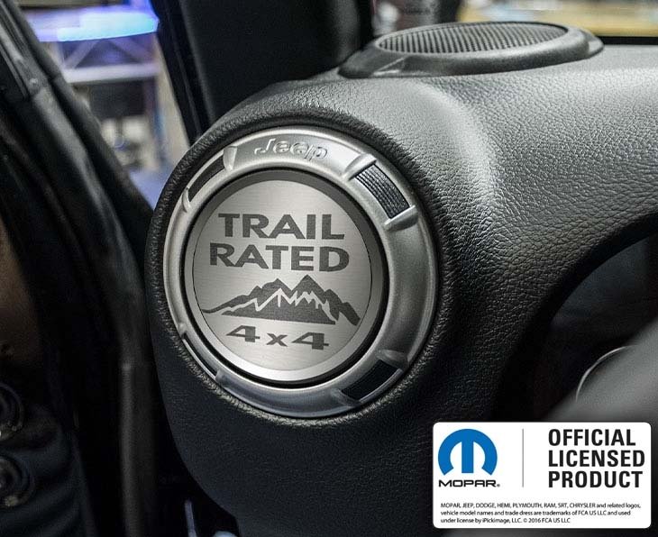Make your interior as cool as the exterior with our Trail Rated Style A/C Duct Trim Plates! These handcrafted trim pieces are an easy peel-and-stick install over your A/C vents and fit all Jeep Wrangler 2007-18 JK & 2018+ JL models. Our Jeep Air Vent Trim Kits do not interfere with the vents actually working. Everything will be the same except for the custom style enhancement. Check out our other styles, including Wrangler, Rubicon, and Find Your Own Trail! Sold as a 4-piece set. These cover plates are meant to enhance the aesthetics of the interior by adding a stylish touch to the existing vents.
