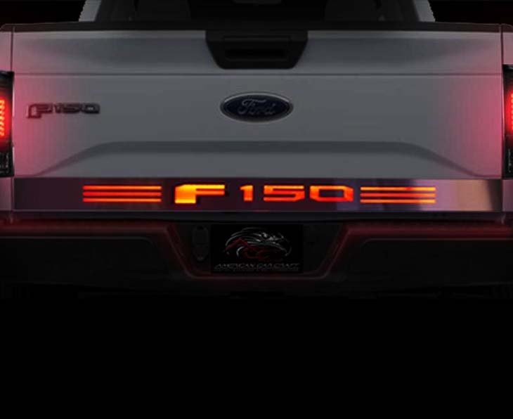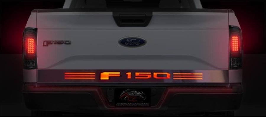 Give your F-150 a truly custom look with our Ford F-150 Light Up Tailgate Rocker Panel. Made to fit perfectly on your rear tailgate. Our high quality, stainless steel will give your truck's tailgate a sleek, custom look, that will turn heads as you drive by day or night! This tailgate trim plate installs as easily as a sticker and illuminates using your tail light circuit. Easy to install and each part is already prepped for paint.