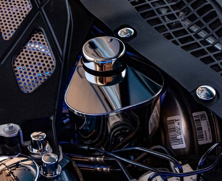 The engine bay of your new Mustang doesn't have to be a drab place coated in dirt and oil. You can make it something worth showing off and we can help, starting with our Mustang Master Cylinder Cover. Whether you want to add a few accessories or you're prepping the entire engine bay for a show winning style, our premium stainless steel Master Cylinder Cover will set your car ahead of the rest. Features easy do-it-yourself installation.