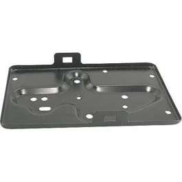 Battery Tray - 7 X 12-1/4 - Top Clamp Type Replacement style battery tray used on 1966/1969 Fairlane and Torino big block, as well as 1969/1970 Galaxies is now available. This part is stamped steel and coated in black for correct finish. This part will also fit 1967 Ford Galaxies.