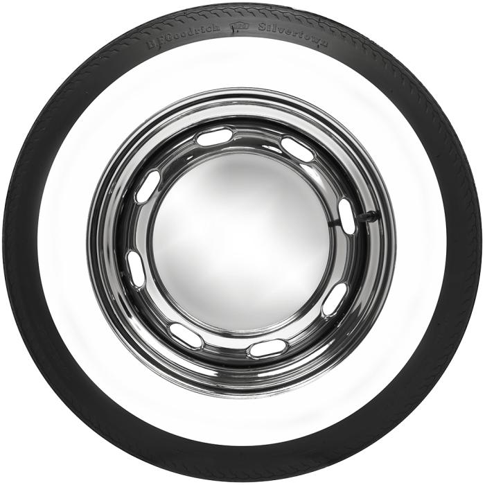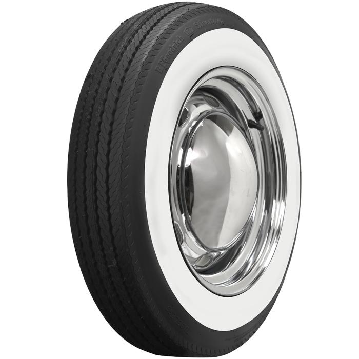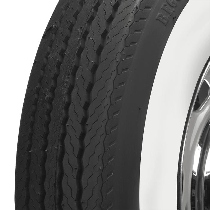 These classic BFGoodrich tires feature authentic profiles and tread designs of the sixties with beautiful wide whitewall styling. BFGoodrich bias ply wide whitewall tires are made in the USA and DOT/ECE (European Community) approved where applicable. Wide whitewalls are smooth, with all stampings and lettering in the the black portion of the sidewall and are covered by our exclusive life of the tread warranty. Please note that dimensions listed tread width, section width and overall diameter are non-scientific and based on an inflated tire, mounted on a wheel. Dimensions may vary due to rim width and inflation pressure. Tread patterns and sidewall styles vary, please click on individual tires below to view photos.