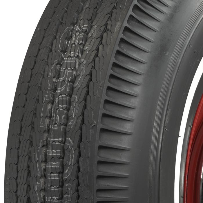 When your search for collector car tires calls for narrower whitewall tires from the sixties, Coker Tire Company has you covered with excellent period-correct 855-15 bias ply tires, which feature a 5/8 inch whitewall. The 855-15 size offers direct fitment for select late '60s and early '70s American cars. These direct fitments include 1969 and 1970 Ford Thunderbird, 1969 Plymouth Fury station wagon, 1969 Oldsmobile 88, and many more. This is a tubeless tire. These premium BFGoodrich Bias Ply Pie Crust tires feature a genuine narrow whitewall design. The authentic tread design and sidewall markings instantly transport you and your car back to the golden age of freeway motoring (and when gas was cheap!) These beautiful pie crust tires are available in several sizes and are outstanding fitments for many 1960s model automobiles. Made in the USA!