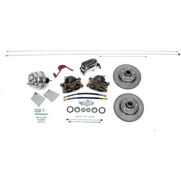 Are you ready for a huge improvement over original, unpredictable four-wheel drum brakes? If you are, then our complete power disc kit for use with dropped spindles is for you. This kit is made specifically for use with our two-inch dropped spindle kit P/N 21-103.  Just bolt-on with our easy-to-follow instructions, add fluid and go.