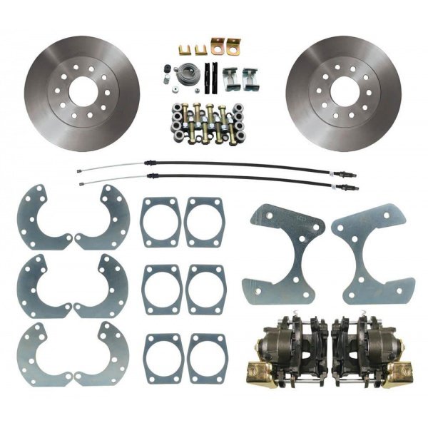 An Inexpensive Way To Add Disc Brakes To Any 9 Ford Rear Includes 11 Vented Rotors Drilled For Chevy And Ford Bolt Patterns, Calipers, Brackets, Hoses And Hardware Multi-Bracket Kit Fits All Size Flanges On 9 Rears Use With Emergency Brake Cable P/N 20-110 Requires Cutting And Flaring Of Rear Housing Brake Lines