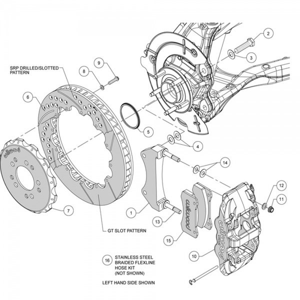 Includes Rotors, Calipers, Hats, Lines, Pads, Brackets, Hardware, & Instructions