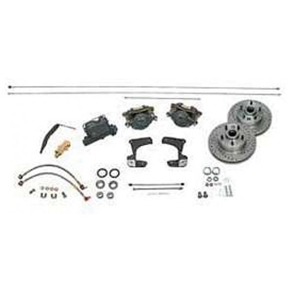 Dramatically Improves Safety Includes All Components At The Spindle Needed To Convert To Front Disc Brakes Includes: 11 Drilled, Slotted & Vented Rotors, New Calipers & Brackets, Ceramic Pads, Stainless Steel Hoses, Bearings, Hardware & Instructions Bolt-On To Original Spindles 1957-58 Owners Must Upgrade From Original 14 Wheels To Later 14 Or 15 Wheels To Clear Calipers Spaces Wheels Outward 7/8 Per Side