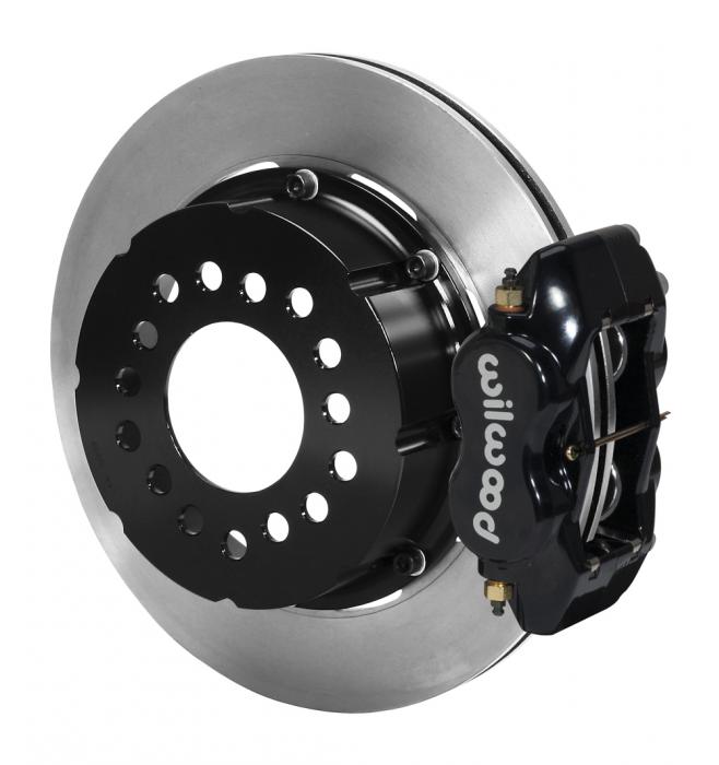 FDL Pro-Series rear disc brake kits provide a complete solution for popular muscle car rear axles on applications where individual wheel parking brake assemblies are not required. Forged billet Dynalite four piston calipers, two-piece hat and rotor assemblies, and high friction pads provide optimized and balanced braking for all types of off-road, competition, and other customized applications. FDL calipers can be optioned with a full range of finishes to reflect personalized style. Rotor choices provide options for high-tech show winning style, or heavy weight durability and cooling capacity for high heat competition.