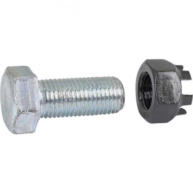 4 cross-drilled bolts and castle nuts, the nuts face the outside of the backing plate. 2 sets required . Also fits Ford Passenger cars.