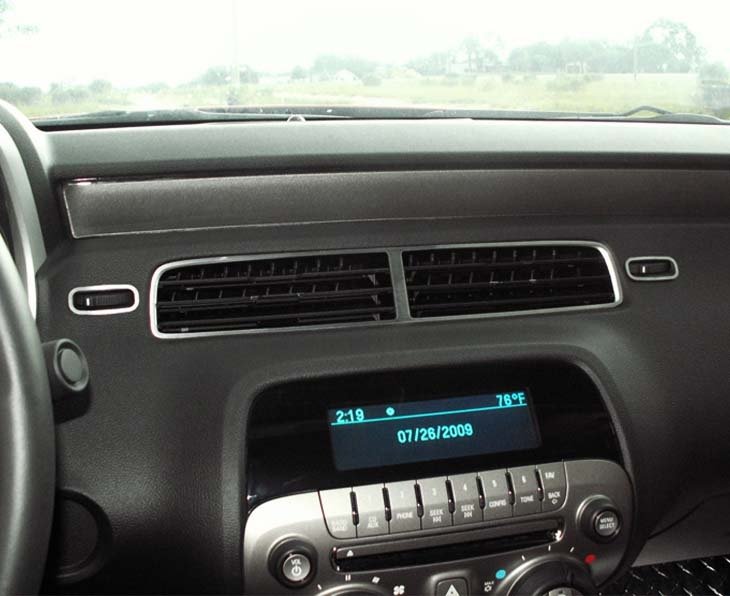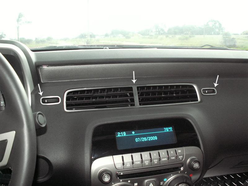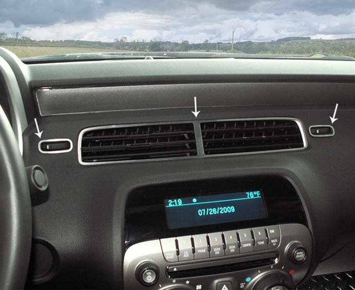 Dress up your Camaro with our brushed stainless steel A/C Vent Trim Kit. These trim pieces are designed to fit over the center A/C vents and add a clean stylish look to your Camaro interior. Compliments our Brushed Camaro Upper Dash A/C Vent Trim pieces - 101009.