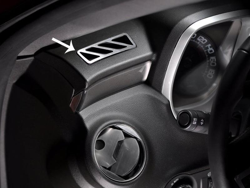 Dress up your Camaro with our polished stainless steel Upper Dash A/C Vent Trim. These trim pieces are designed to fit over the upper dash a/c vents and add a clean stylish look to your Camaro interior. Compliments our Polished Center Dash A/C Vent Trim pieces - 101005.