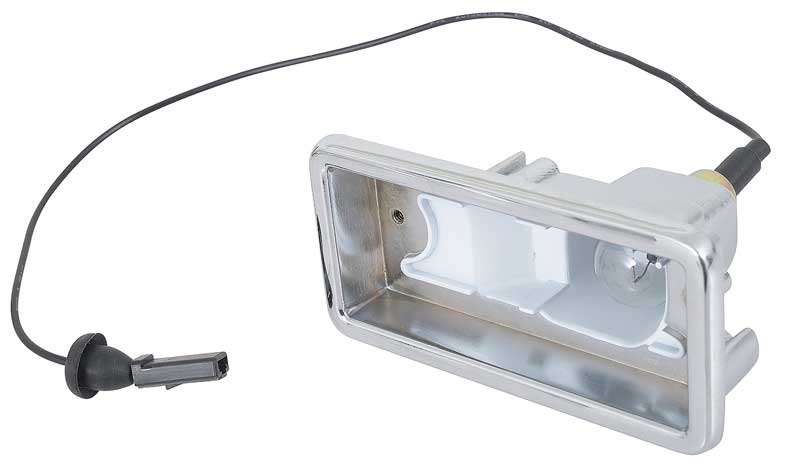 Reproduction back up lamp housing for 1967-68 Camaros with the Rally Sport option. This complete assembly will replace the lower back up lamp housing for the driver side. Includes correct polished chrome housing, bulb socket with 8" lead and body grommet. Note: Lens available separately. Refer to part number # 5959251 for back up lens.