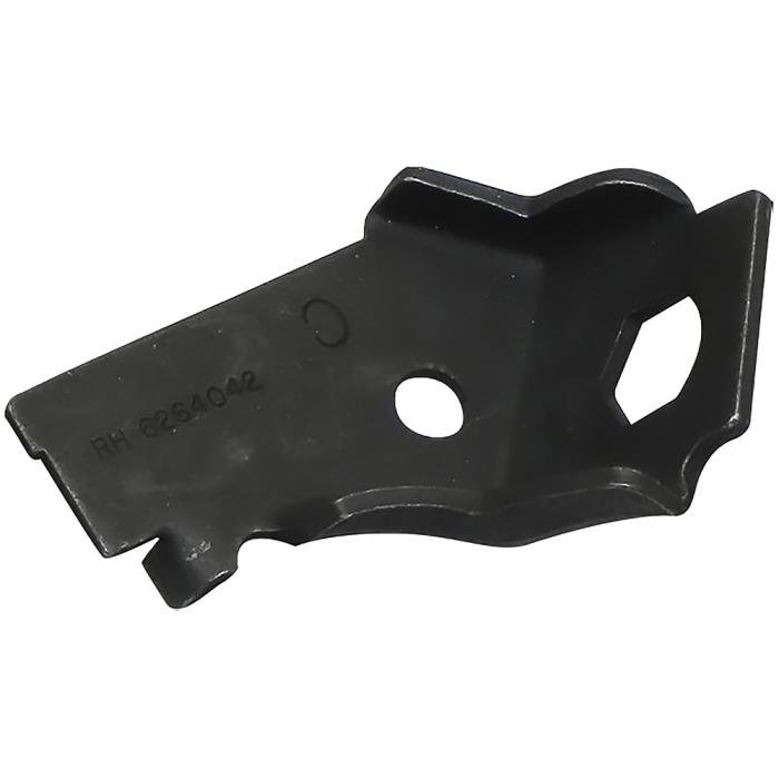 Reproduction passenger side front brake hose bracket designed specifically for 1974-76 models. Features keyway style holes to perfectly fit the 1974-76 style brake hoses. Reproduced to exact specifications, this bracket attaches to the frame rail and the brake hose passes through it. Unlike other brackets that have hexagon-shaped holes, these have the correct original offset keyway hole design and are the only brackets that will fit 1974-76 model hoses.