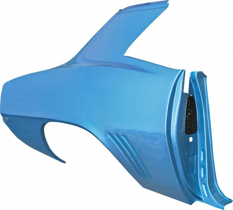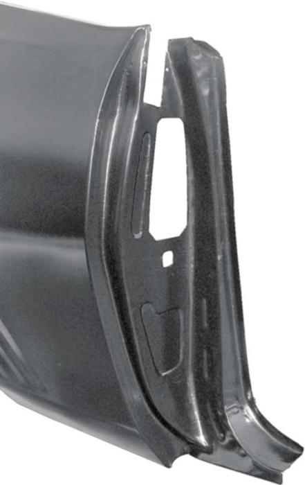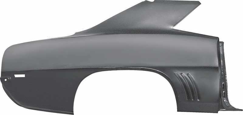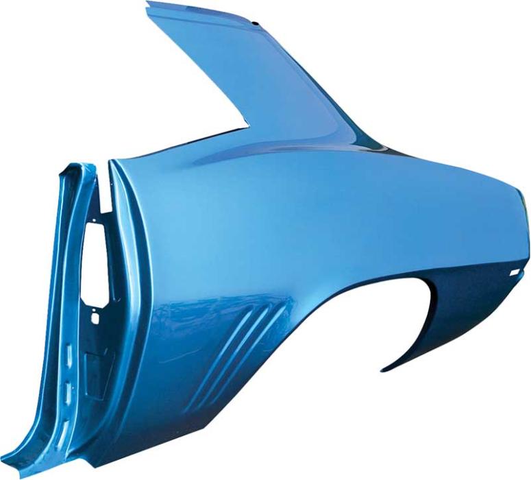 Reproduction complete quarter panel for 1969 Camaro coupe models. Each panel is precision-manufactured in high-quality stamped steel to original factory specifications for an authentic fit and finish. Unlike a simple quarter skin, this panel replaces the entire quarter section including the door jamb, trunk gutter, upper sail panel, and more. Designed to attach at the original factory seams, ensuring a seamless restoration. Finished in durable black EDP (electrophoretically deposited) coating for long-lasting rust and corrosion protection.