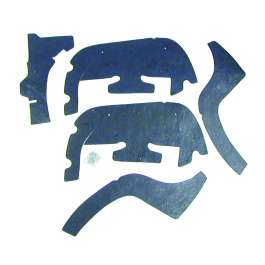Set includes all four wheel well pieces and the steering shaft shield. NOTE: Set includes staples. But, it is advisable to have extras on hand. New and replacement wheel wells will need to be drilled for staples before installation by hand.