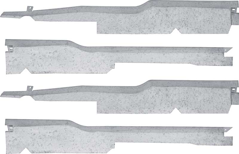 Reproduction of the original style floor wiring cover set, also known as the door sill wire loom shield set designed for use with 1967-69 Camaro and Firebird models. These special wiring loom covers are screwed to the inner rocker area and act as protection for the wiring that runs along the floor. Each cover is manufactured from galvanized steel just like the originals. 4 piece set.