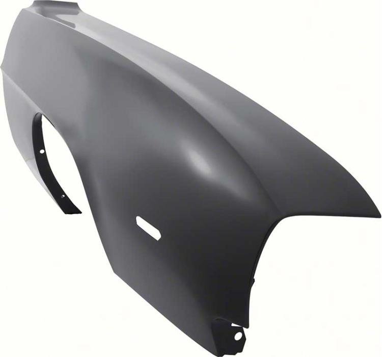 Reproduction of the original front fender designed for use on 1969 Camaro RS models (with concealed headlamp option). This fender is an excellent replacement for your rusted or damaged factory original. Manufactured in high grade stamped steel replicating the original GM fender in fit and appearance. Will install correctly and includes the front fender extension. Features a black electrophoretically deposited coating (EDP, or E-coat) for superior long-term corrosion protection. Fender is ready to be prepped, primed and painted without stripping.