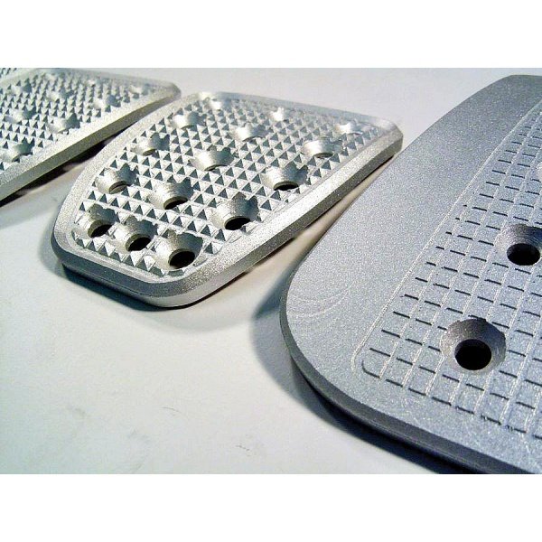 You bought a 1993-2002 Camaro to be a king on the road. Plus not only do you want your Camaro to look like a race car but you also want it to feel like driving a race car as well. All our racing pedals are CNC machined from aircraft quality billet aluminum for the highest levels of grip. The top surfaces have sharp edges machined into them to keep your foot from sliding. The gas pedals are typically left a little smoother because you do want your foot to slide on the gas pedal. You have 2 different choices of pedal grip, Pyramid and Block, with 3 different finishes, Satin, Black, and Black/Silver. The Grid and Block styles are machined from thicker billet aluminum which allows for more surface detail to be machined into the part, resulting in a more 3 dimensional looking pedal. The pointy tips of the Pyramid style offer the highest grip of any pedal. They bite into your shoes and won't let go. Note: These pedals are created per customer request, so expect 2-4 week's for delivery per order.