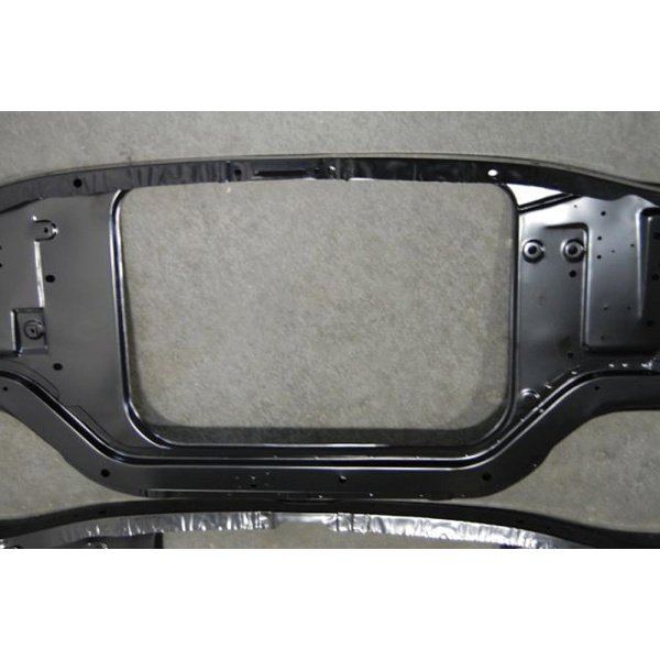 1967-68 Camaros originally had a different core support from a 1969. This core support has the correct adjustable cage nut for the hood latch support brace and the correct hole size to mount the voltage regulator with sheet metal screws as original for 1969.