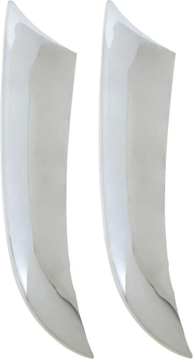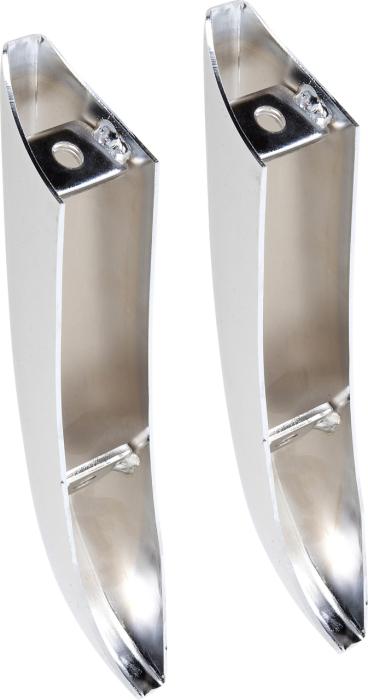 Reproduction of the original rear lower chrome bumper guard, sometimes known as a bumperette designed for use on 1967-68 Camaro models. Each bumper guard is manufactured in heavy-duty cast than chrome plated matching the original in design and fit. This bumper guard bolts to the underside of the rear bumper on both sides of the license plate. Unlike the larger "overider" style bumper guards, these guards do not utilize a rubberized cushion insert. Refer to part number # K335 for rear bumper guard mounting brackets available separately.