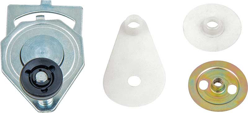Reproduction door glass roller assembly set for one side on 1970-81 Camaro and Firebird models. This roller assembly is located at the front portion of the door glass and installs in the front track channel. This roller travels up and down the channel as the window regulator mechanism is operated. Features a galvanized finish like the originals. One required per door. Fits RH or LH door. Sold individually. Replaces OE #'s 9804075 Roller, 4491087 Round Washer, 8740675 Pear-Shaped Plastic Washer Plate, 4491088 Steel Roller Retaining Nut. Sold as a 4-piece set to repair one side of the vehicle. 2 sets required per vehicle.