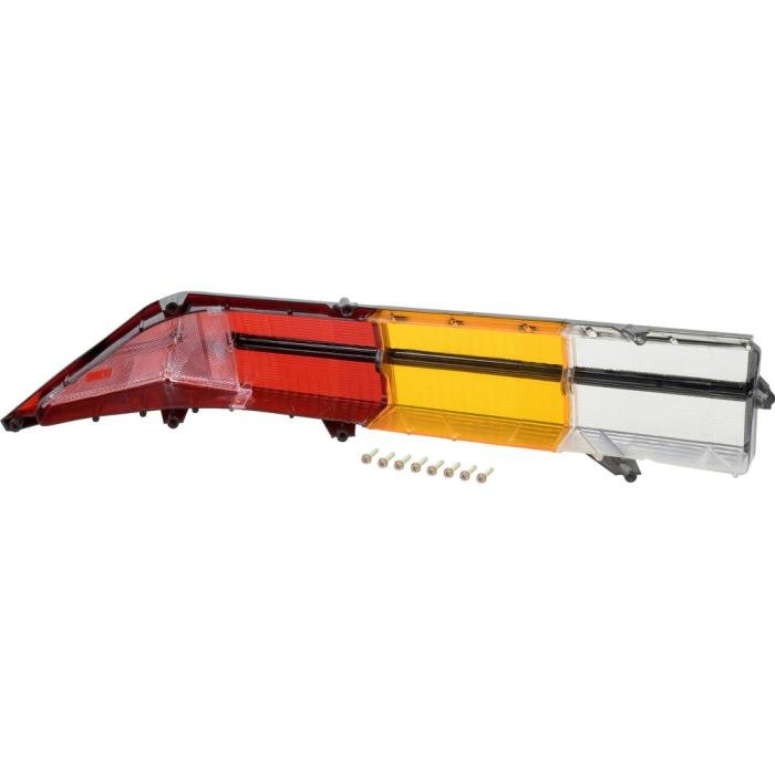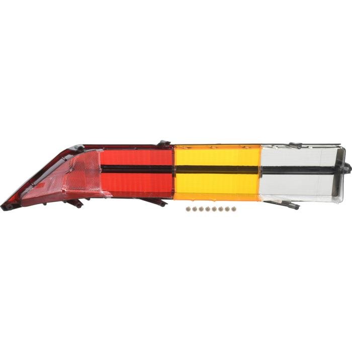 Reproduction tail lamp lens for 1980-81 Camaro Z28 models. Each tail lamp assembly is manufactured in quality injection molded acrylic lens material to factory specifications. This tri-colored tail lamp assembly features a horizontal black stripe (correct for Z28 models), black perimeter accents and all correct SAE markings on the lens replicating the original in quality and appearance. Refer to part number # 5969308 for tail lamp housing (available separately).