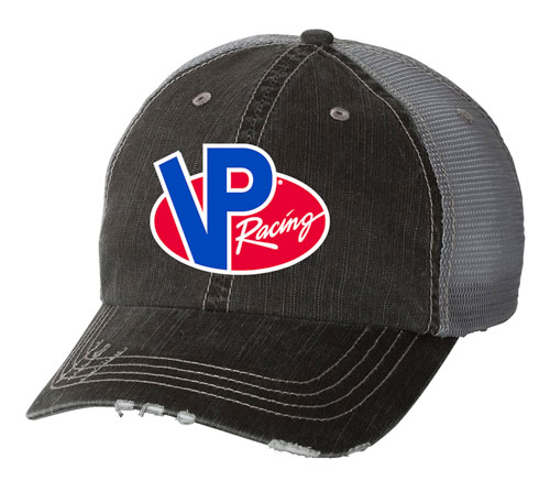 This low profile adjustable back weathered caps fits most. Embroidered with the VP Racing logo on the front only. Velcro strap closure with trucker mesh back.