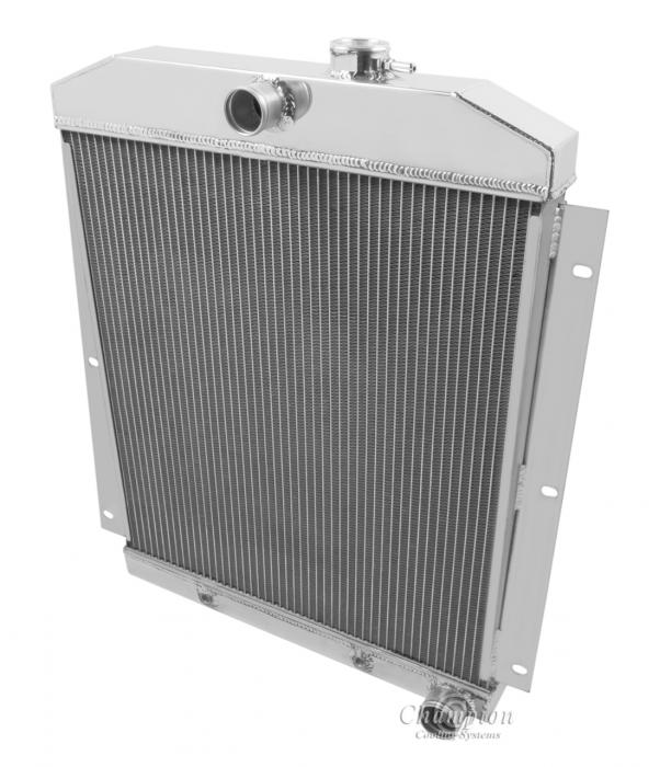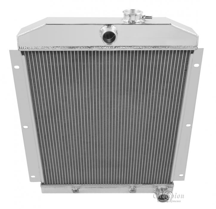 Our Champion Pro series radiators are designed to cool your high performance engine and to keep you and your car on the road. The Champion Pro series is designed using 11/16” tubes. These radiators are built with three rows of tubes, brazed aluminum cores which are tig-welded to aluminum tanks. All have approximately 14-16 louvered fins per inch, a brass petcock, and all are designed with aircraft grade aluminum. The strength of the aluminum allows for the improved design of larger tubes which allows a lightweight more affordable aluminum radiator to outperform a copper-brass radiator of similar dimensions. These radiators are typically 30-40% more efficient than their copper-brass equivalent. We would recommend one of these radiators for vehicles applications with 800 horsepower or less.