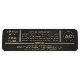Reproduction Of Original Correct Style AC Service Notice This Chevelle reproduction air cleaner service decal has been manufactured to original factory specifications using today's modern manufacturing techniques. You will find the fit, finish and function will work superbly for your restoration.