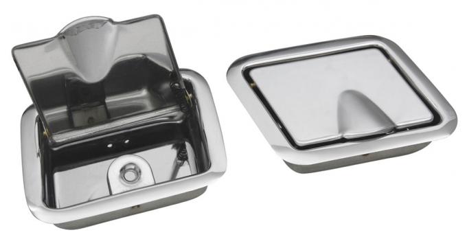 These polished, bright chrome ash trays include the receiver and insert assembly (except for part# CH40059, which does not include the tray). Part# CH40059 comes with a ribbed lid, while part# PZ00025 includes a smooth lid.