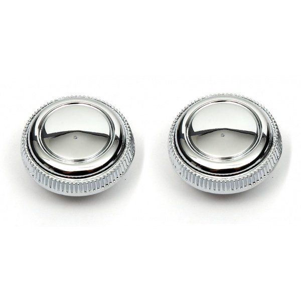 Hard chrome reproductions of factory original radio control knobs for original AM and AM/FM radios.