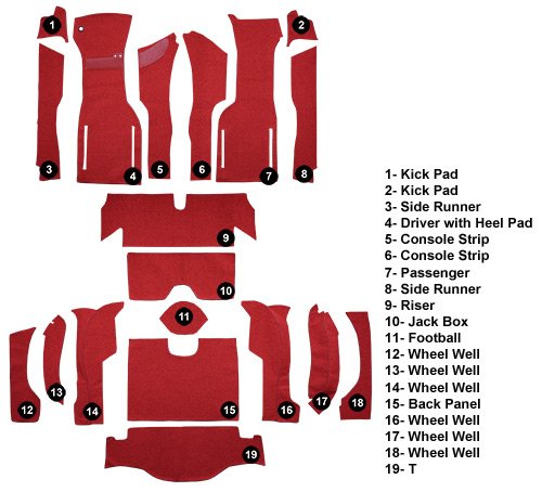 Auto Custom Carpets Original Equipment Replacement Carpet Kits are crafted from heavy duty materials designed to last for many years of extensive use. These long-wearing carpets will surely complement your vehicle's interior with a wide variety of colors to choose from so you can get a perfect match for your vehicle’s interior. Known worldwide as a top automotive replacement carpet manufacturer, Auto Custom Carpets continues to provide excellent products to its customers. Auto Custom Carpets have always been made in America and now operates 3 factories, including making moulded carpets in the same factory where moulded carpets were pioneered in 1958. Auto Custom Carpets simply offers the widest selection of replacement automotive carpet in the industry today and is committed to manufacturing all products in USA.
