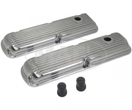 Chevy big block short chrome steel valve covers fit 1965-95 Chevy 396-427-454-502 big block engines. They are baffled and short (stock) style. There is one hole in each cover.